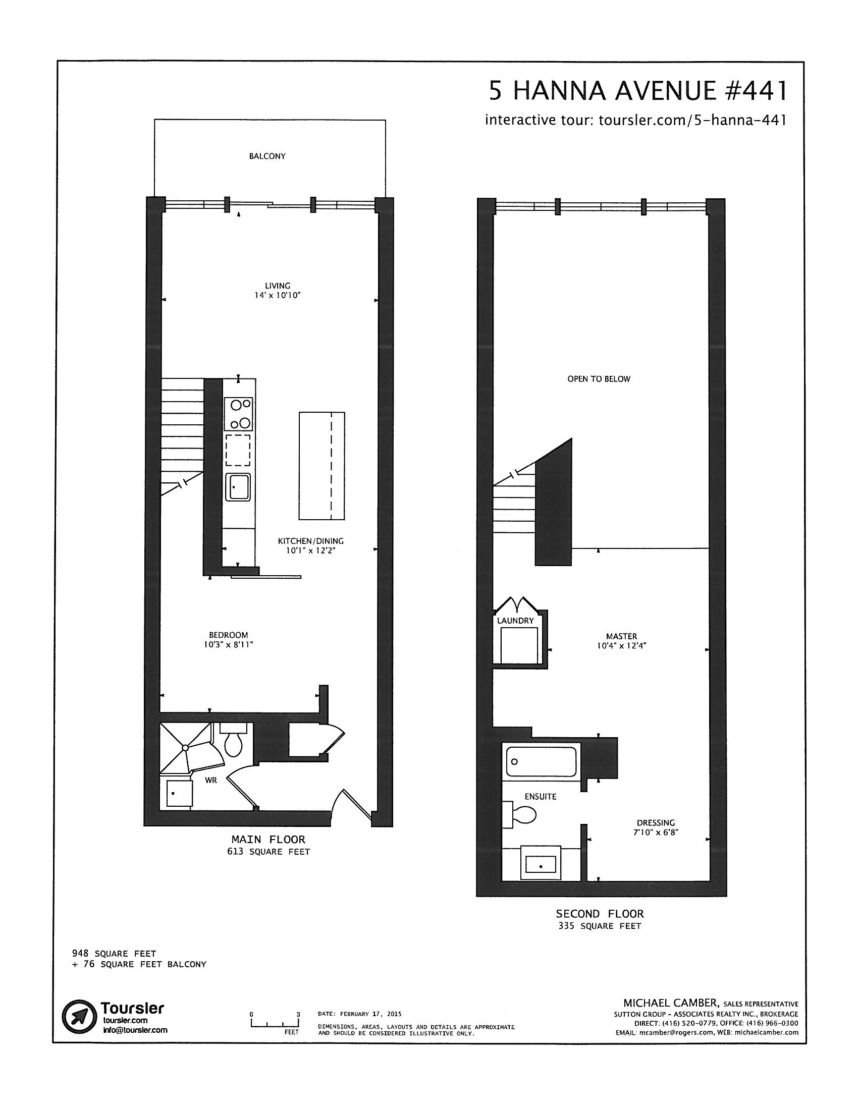 The Liberty Market Lofts at 5 Hanna is a boutique live/work building situated in the centre of Liberty Village immediately beside all the shops and services of the historic Liberty Market building. During the summer and fall, residents of the Liberty Market Lofts enjoy their location right across the street from the Liberty Village Farmer’s Market. Most of the suites are two-storey lofts with approximately 17 foot-high ceilings. Built by the renowned developers of Lifetime and Blvd Developments, a team responsible for such buildings and new Four Seasons Residences in Yorkville, Victory Condos and Bisha Condos and Hotel among many others. It was designed by the Rudy Wallman Architects who are known for their sensitive designs that not only make a statement but relate the buildings to their surroundings. The architect and developer have included a comprehensive set of building amenities to take into the specific needs of demographics such as live/work owners, artists and pet lovers. For example, here are highlights of building amenities: a Business Centre that includes multiple meeting rooms; an art gallery and display area on the main floor; a dog washing and grooming facility; an indoor basketball half-court; a fitness studio with a yoga/stretch room; a laundry lounge with oversize load machines; a tool/utility room; a designer-decorated hotel-style guest suite; Outdoor space is included with a landscaped courtyard with seating areas, and most of the individual loft suites have oversized balconies and terraces.